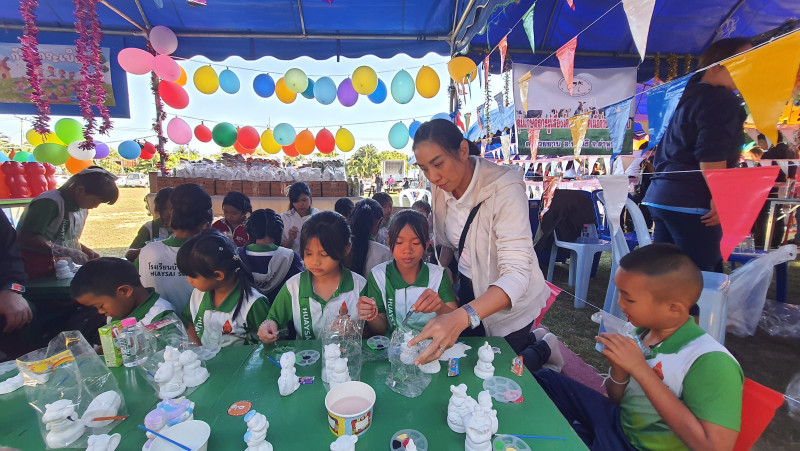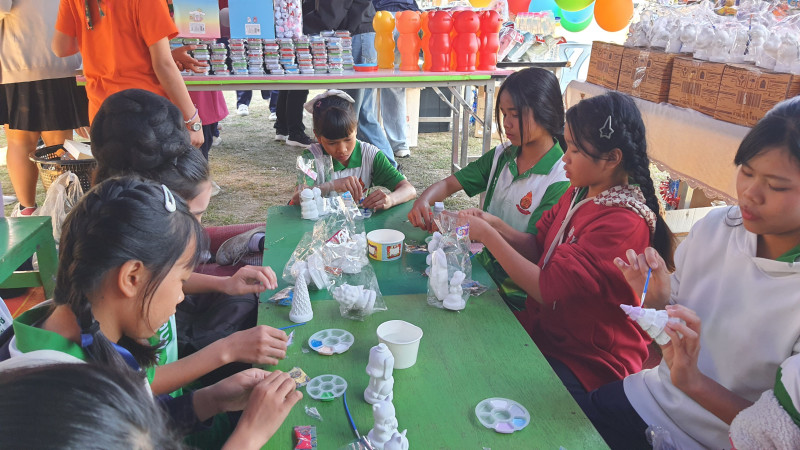 บรรยากาศภายในงานเต็มไปด้วยรอยยิ้มและความสนุกสนานจากกิจกรรมการแสดงของนักเรียนชั้นอนุบาลถึงมัธยมศึกษาปีที่ 3 การตอบคำถามชิงรางวัล และบูธนันทนาการจากพี่ๆ ชาวสหกรณ์ อาทิ ระบายสีปูนพลาสเตอร์ 🎨, เกมโยนลูกบอล 🥎, กลิ้งขวดน้ำ 🍾 และระบายสีตัวการ์ตูน