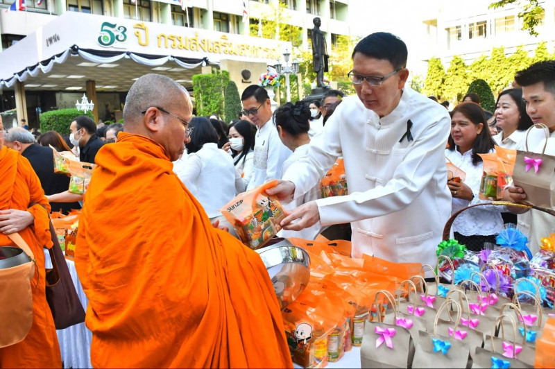 โดยกิจกรรมในช่วงเช้า นายนิรันดร์ มูลธิดา อธิบดีกรมส่งเสริมสหกรณ์ เป็นประธานในพิธี พร้อมด้วยคณะผู้บริหารระดับสูง อาทิ นายประวัติ แดงบรรจง และ นายณฤทธิ์ บุญชัย รองอธิบดีกรมส่งเสริมสหกรณ์ นำคณะข้าราชการร่วมพิธีสงฆ์ ถวายภัตตาหารเช้าแด่พระภิกษุสงฆ์และสามเณร พร้อมทั้งสักการะสิ่งศักดิ์สิทธิ์ประจำกรมส่งเสริมสหกรณ์ และร่วมตักบาตรข้าวสารอาหารแห้ง เพื่อความเป็นสิริมงคล เป็นขวัญและกำลังใจในการปฏิบัติราชการตลอดปี 🌤️🙏