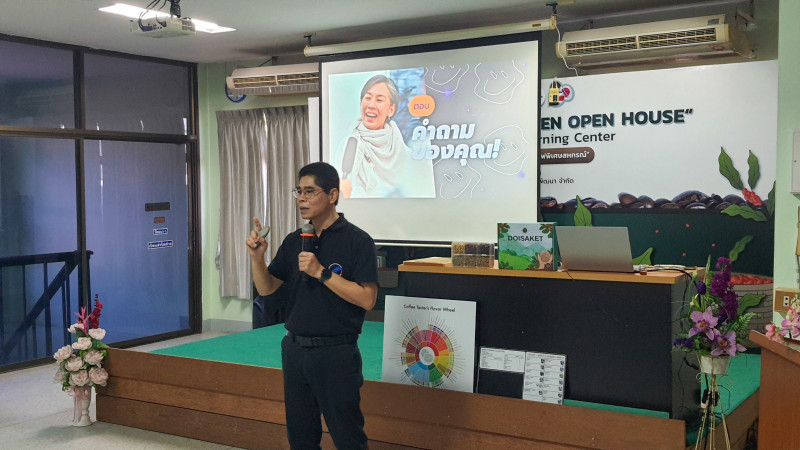 โดยมี นางแสงจันทร์ มะโนเกี๋ยง ประธานกรรมการ สหกรณ์การเกษตรดอยสะเก็ดพัฒนา จำกัด ให้การต้อนรับ และ นายประหยัด เสนน้อง ผู้จัดการสหกรณ์ฯ บรรยายเจาะลึกเรื่อง "เส้นทางกาแฟคุณภาพ" ตั้งแต่ต้นน้ำถึงปลายน้ำ: