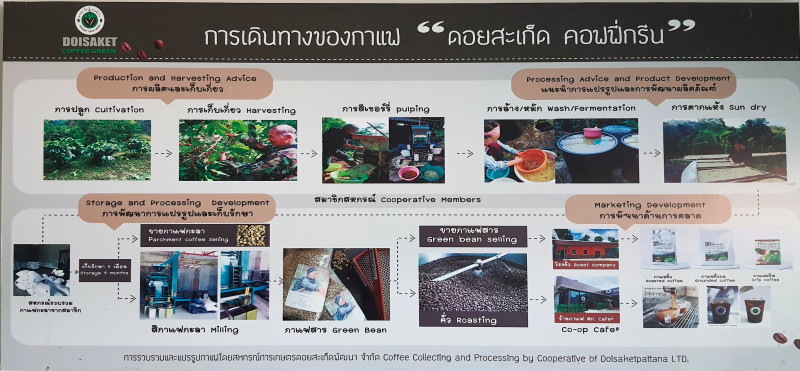 • การแปรรูป (Processing): ถ่ายทอดเทคโนโลยีจาก JICA (ญี่ปุ่น) ทั้งแบบ Washed, Honey และ Natural Process เพื่อสร้างรสชาติที่หลากหลายและได้มาตรฐาน