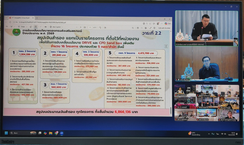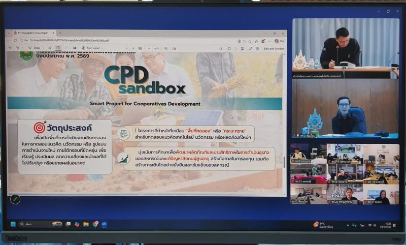 เชียงใหม่, วันที่ 19 กุมภาพันธ์ 2569 🗓️ นายอนุรัตน์ เลื่อนลอย ผู้อำนวยการสำนักพัฒนาและถ่ายทอดเทคโนโลยีการสหกรณ์ เป็นประธานการประชุม “การขับเคลื่อนนโยบายของกรมส่งเสริมสหกรณ์ ปีงบประมาณ พ.ศ. 2569 (CPD DRIVE และ CPD Sandbox)” 🚀 โดยมี นายต้นตระการ กันทะเรือน ผู้อำนวยการศูนย์ถ่ายทอดเทคโนโลยีการสหกรณ์ที่ 9 พร้อมด้วยข้าราชการและพนักงานราชการเข้าร่วมประชุม 👥 ผ่านระบบประชุมทางไกลออนไลน์ Zoom Meeting 💻🌐 เพื่อสรุปนโยบายพร้อมทั้งมอบหมายการดำเนินงานตามนโยบายดังกล่าวแก่บุคลากร ณ ห้องประชุมสีรุ้ง ศูนย์ถ่ายทอดเทคโนโลยีการสหกรณ์ที่ 9 จังหวัดเชียงใหม่ 📍🏢