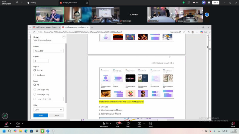 เชียงใหม่, 26 มีนาคม 2569 – นายต้นตระการ กันทะเรือน ผู้อำนวยการศูนย์ถ่ายทอดเทคโนโลยีการสหกรณ์ที่ 9 จังหวัดเชียงใหม่ มอบหมายให้บุคลากรศูนย์ฯ 9 เข้าร่วมโครงการอบรมหลักสูตร “การใช้โปรแกรม Canva AI เพื่อเพิ่มประสิทธิภาพการทำงาน” ผ่านระบบออนไลน์ Zoom Meeting เพื่อให้เกิดความรู้ ความเข้าใจการใช้งานโปรแกรม Canva AI อีกทั้งเสริมสร้างทักษะด้านเทคโนโลยีดิจิทัลและยกระดับศักยภาพในการปฏิบัติงานของบุคลากรให้มีความทันสมัยมากยิ่งขึ้น สามารถออกแบบสื่อประชาสัมพันธ์ งานนำเสนอ และเอกสารต่าง ๆ อย่างมีประสิทธิภาพ ช่วยลดระยะเวลาในการทำงาน และเพิ่มความสวยงาม น่าสนใจให้กับผลงาน พร้อมทั้งสามารถนำไปประยุกต์ใช้ในการปฏิบัติงานจริง อันจะส่งผลให้การดำเนินงานของศูนย์ฯ 9 มีประสิทธิภาพมากยิ่งขึ้น และสอดคล้องกับการพัฒนาทักษะดิจิทัลในยุคปัจจุบัน